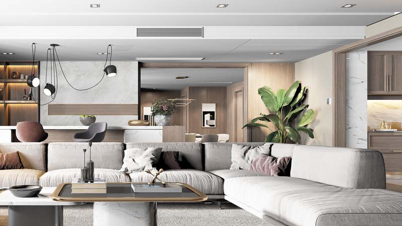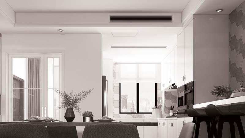 İç mekan dekorasyonuna uyum sağlayabilmek için tamamen asma tavan içerisine gizlenen üniteler, 200mm gibi düşük iç ünite yükseklikleri sayesinde tavan içerisinde çok az boşluğa ihtiyaç duyar.